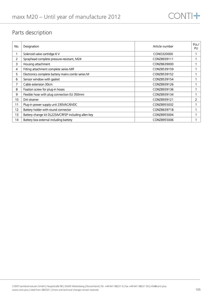 CONTI Sanitärarmaturen GmbH | Hauptstraße 98 | 35435 Wettenberg | Deutschland | Tel. +49 641 98221 0 | Fax +49 641 98221 50 | info@conti.plus