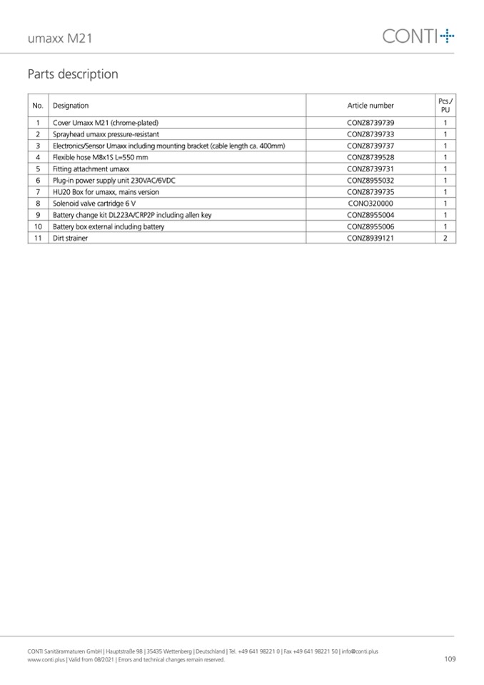 CONTI Sanitärarmaturen GmbH | Hauptstraße 98 | 35435 Wettenberg | Deutschland | Tel. +49 641 98221 0 | Fax +49 641 98221 50 | info@conti.plus