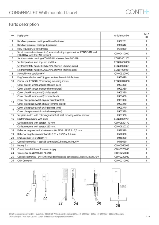 CONTI Sanitärarmaturen GmbH | Hauptstraße 98 | 35435 Wettenberg | Deutschland | Tel. +49 641 98221 0 | Fax +49 641 98221 50 | info@conti.plus