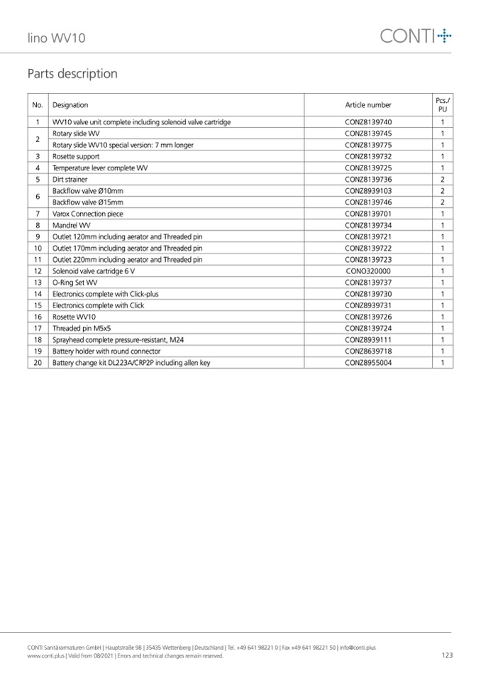 CONTI Sanitärarmaturen GmbH | Hauptstraße 98 | 35435 Wettenberg | Deutschland | Tel. +49 641 98221 0 | Fax +49 641 98221 50 | info@conti.plus