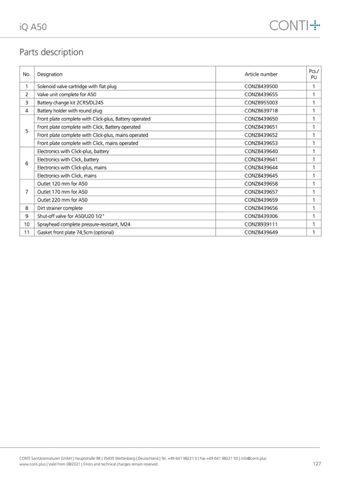 CONTI Sanitärarmaturen GmbH | Hauptstraße 98 | 35435 Wettenberg | Deutschland | Tel. +49 641 98221 0 | Fax +49 641 98221 50 | info@conti.plus