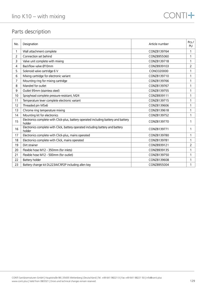CONTI Sanitärarmaturen GmbH | Hauptstraße 98 | 35435 Wettenberg | Deutschland | Tel. +49 641 98221 0 | Fax +49 641 98221 50 | info@conti.plus