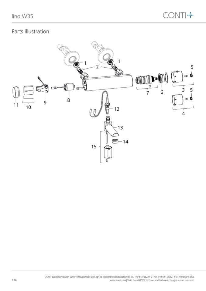 CONTI Sanitärarmaturen GmbH | Hauptstraße 98 | 35435 Wettenberg | Deutschland | Tel. +49 641 98221 0 | Fax +49 641 98221 50 | info@conti.plus