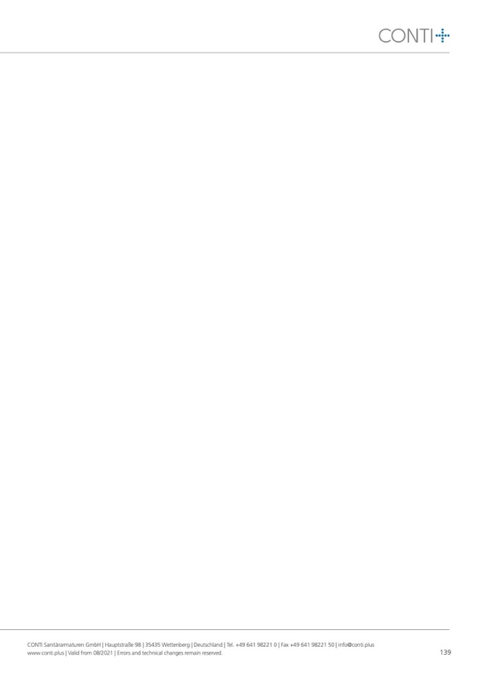 CONTI Sanitärarmaturen GmbH | Hauptstraße 98 | 35435 Wettenberg | Deutschland | Tel. +49 641 98221 0 | Fax +49 641 98221 50 | info@conti.plus