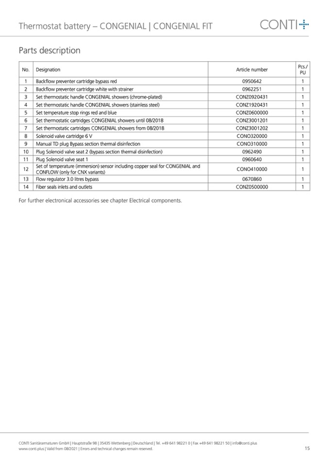 Set thermostatic cartridges CONGENIAL showers until 08/2018