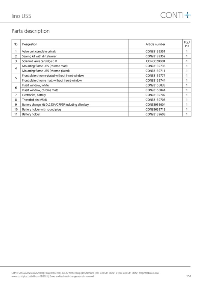 CONTI Sanitärarmaturen GmbH | Hauptstraße 98 | 35435 Wettenberg | Deutschland | Tel. +49 641 98221 0 | Fax +49 641 98221 50 | info@conti.plus