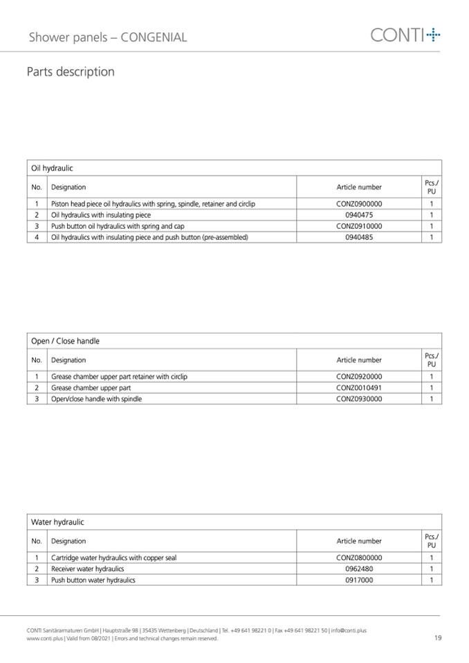 CONTI Sanitärarmaturen GmbH | Hauptstraße 98 | 35435 Wettenberg | Deutschland | Tel. +49 641 98221 0 | Fax +49 641 98221 50 | info@conti.plus