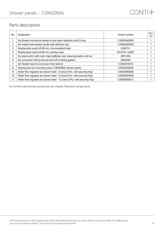 CONTI Sanitärarmaturen GmbH | Hauptstraße 98 | 35435 Wettenberg | Deutschland | Tel. +49 641 98221 0 | Fax +49 641 98221 50 | info@conti.plus