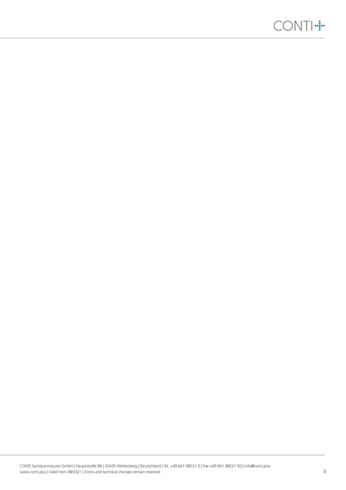 CONTI Sanitärarmaturen GmbH | Hauptstraße 98 | 35435 Wettenberg | Deutschland | Tel. +49 641 98221 0 | Fax +49 641 98221 50 | info@conti.plus