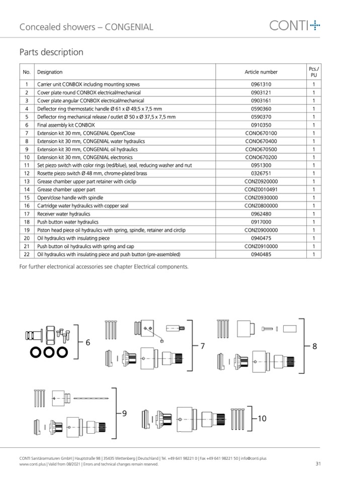 CONTI Sanitärarmaturen GmbH | Hauptstraße 98 | 35435 Wettenberg | Deutschland | Tel. +49 641 98221 0 | Fax +49 641 98221 50 | info@conti.plus