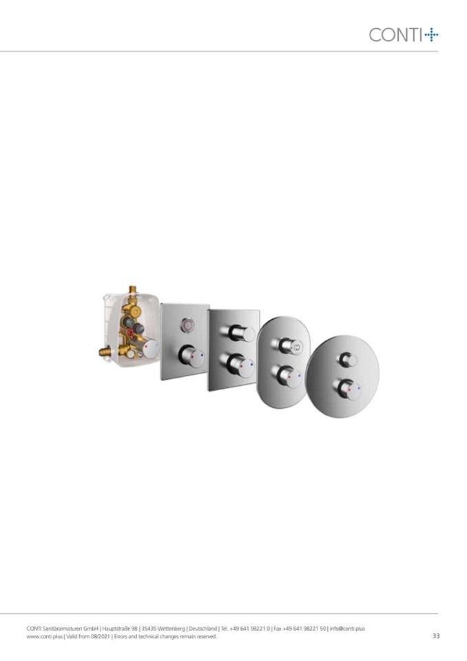 CONTI Sanitärarmaturen GmbH | Hauptstraße 98 | 35435 Wettenberg | Deutschland | Tel. +49 641 98221 0 | Fax +49 641 98221 50 | info@conti.plus