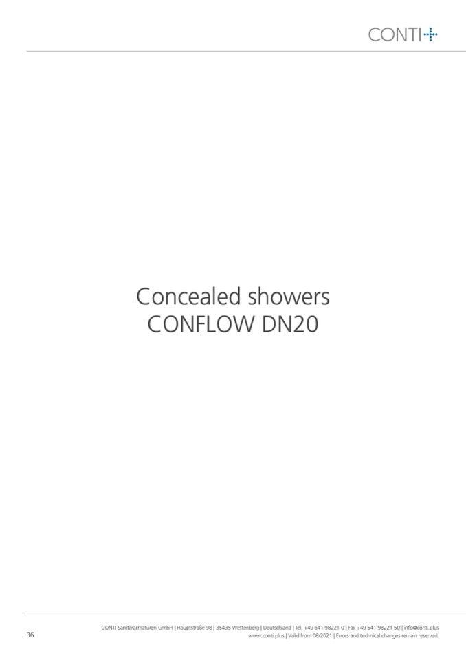 CONTI Sanitärarmaturen GmbH | Hauptstraße 98 | 35435 Wettenberg | Deutschland | Tel. +49 641 98221 0 | Fax +49 641 98221 50 | info@conti.plus