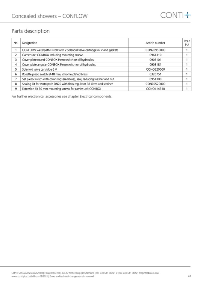 CONTI Sanitärarmaturen GmbH | Hauptstraße 98 | 35435 Wettenberg | Deutschland | Tel. +49 641 98221 0 | Fax +49 641 98221 50 | info@conti.plus