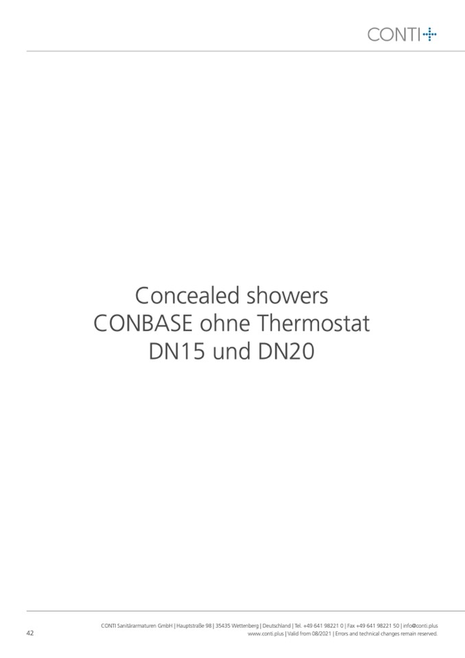 CONTI Sanitärarmaturen GmbH | Hauptstraße 98 | 35435 Wettenberg | Deutschland | Tel. +49 641 98221 0 | Fax +49 641 98221 50 | info@conti.plus