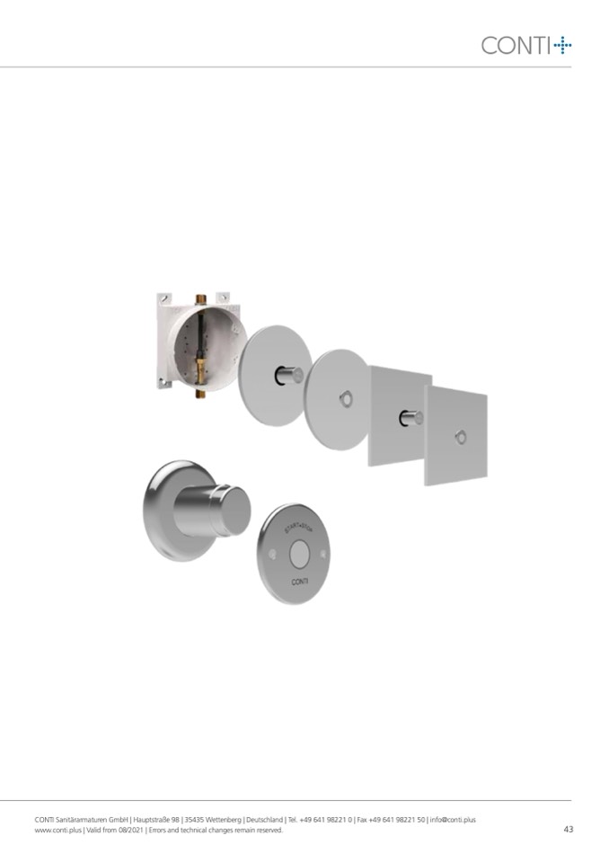 CONTI Sanitärarmaturen GmbH | Hauptstraße 98 | 35435 Wettenberg | Deutschland | Tel. +49 641 98221 0 | Fax +49 641 98221 50 | info@conti.plus