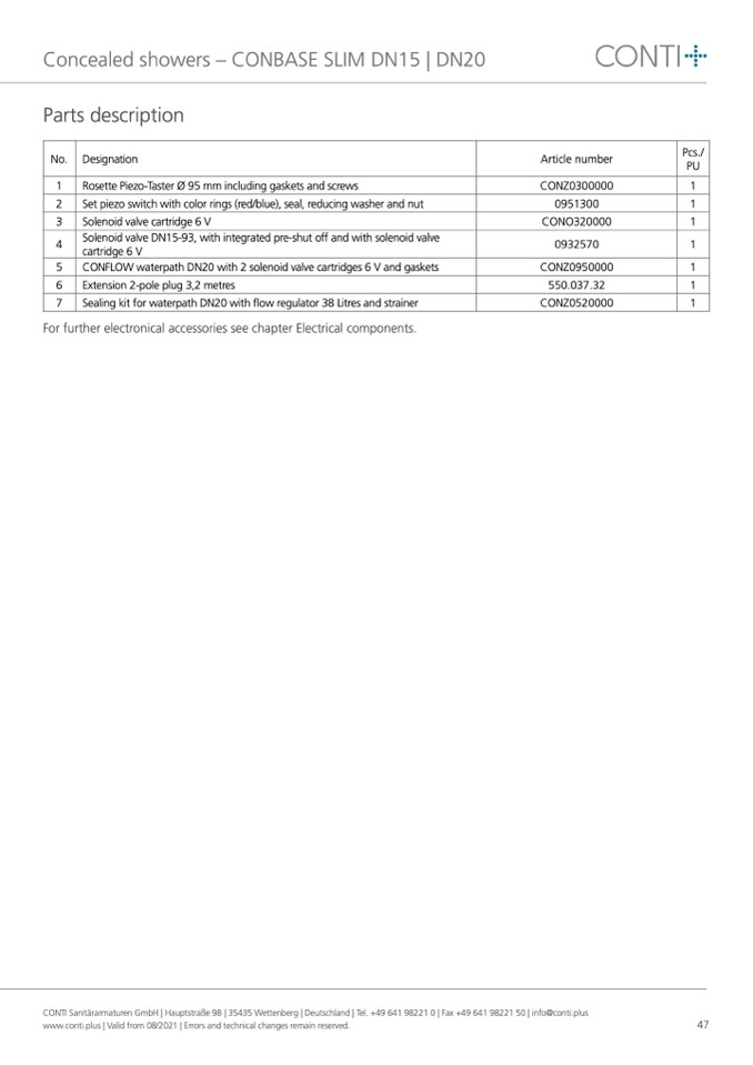 CONTI Sanitärarmaturen GmbH | Hauptstraße 98 | 35435 Wettenberg | Deutschland | Tel. +49 641 98221 0 | Fax +49 641 98221 50 | info@conti.plus