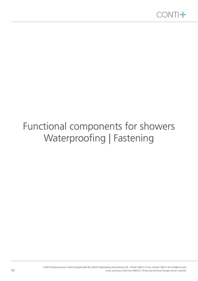 CONTI Sanitärarmaturen GmbH | Hauptstraße 98 | 35435 Wettenberg | Deutschland | Tel. +49 641 98221 0 | Fax +49 641 98221 50 | info@conti.plus