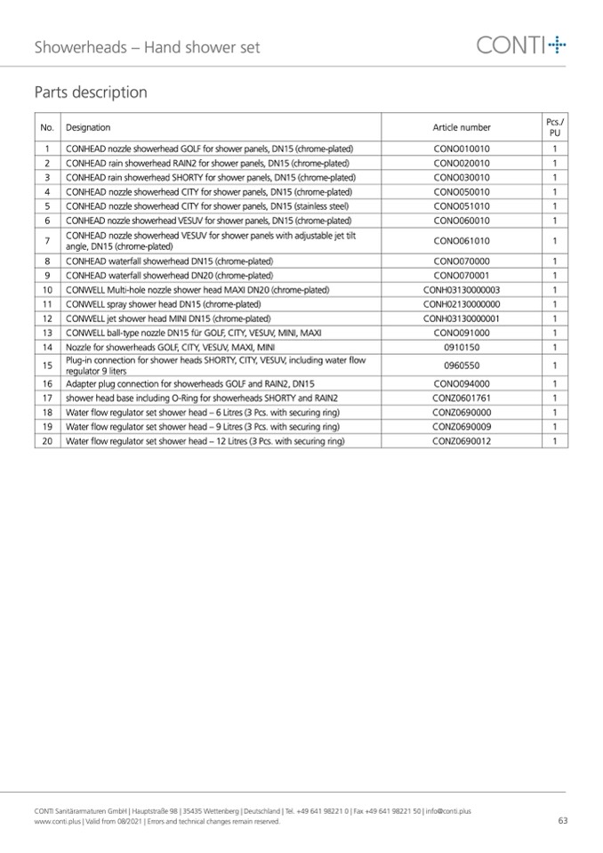 CONTI Sanitärarmaturen GmbH | Hauptstraße 98 | 35435 Wettenberg | Deutschland | Tel. +49 641 98221 0 | Fax +49 641 98221 50 | info@conti.plus