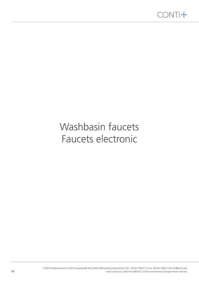CONTI Sanitärarmaturen GmbH | Hauptstraße 98 | 35435 Wettenberg | Deutschland | Tel. +49 641 98221 0 | Fax +49 641 98221 50 | info@conti.plus