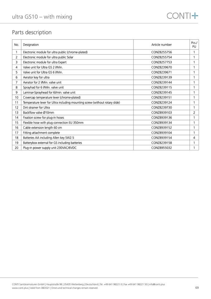 CONTI Sanitärarmaturen GmbH | Hauptstraße 98 | 35435 Wettenberg | Deutschland | Tel. +49 641 98221 0 | Fax +49 641 98221 50 | info@conti.plus