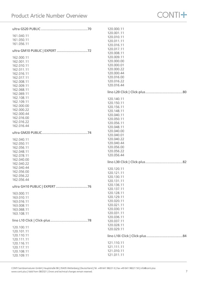 CONTI Sanitärarmaturen GmbH | Hauptstraße 98 | 35435 Wettenberg | Deutschland | Tel. +49 641 98221 0 | Fax +49 641 98221 50 | info@conti.plus