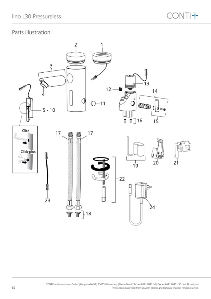 CONTI Sanitärarmaturen GmbH | Hauptstraße 98 | 35435 Wettenberg | Deutschland | Tel. +49 641 98221 0 | Fax +49 641 98221 50 | info@conti.plus