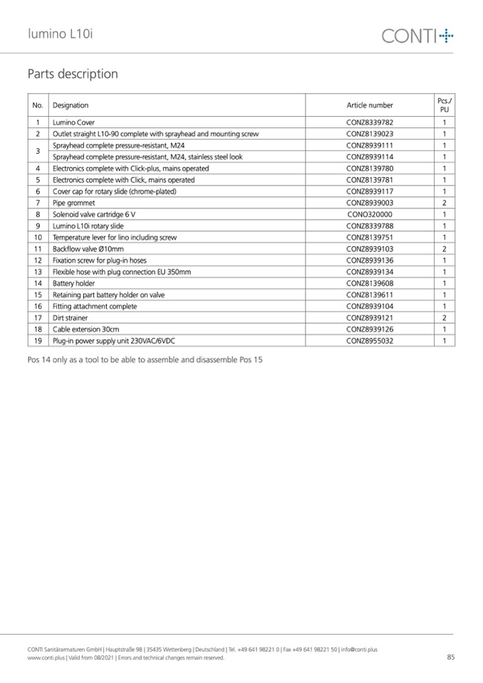 CONTI Sanitärarmaturen GmbH | Hauptstraße 98 | 35435 Wettenberg | Deutschland | Tel. +49 641 98221 0 | Fax +49 641 98221 50 | info@conti.plus