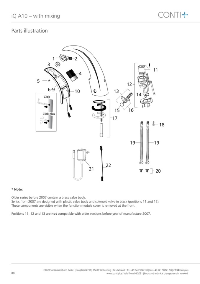 Series from 2007 are designed with plastic valve body and solenoid valve in black (positions 11 and 12)�