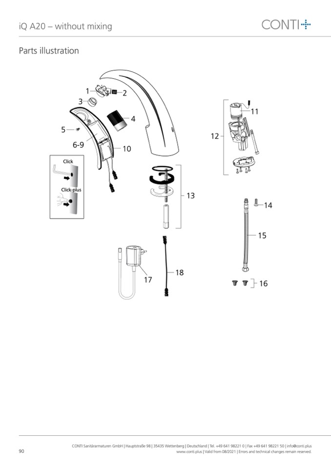 CONTI Sanitärarmaturen GmbH | Hauptstraße 98 | 35435 Wettenberg | Deutschland | Tel. +49 641 98221 0 | Fax +49 641 98221 50 | info@conti.plus