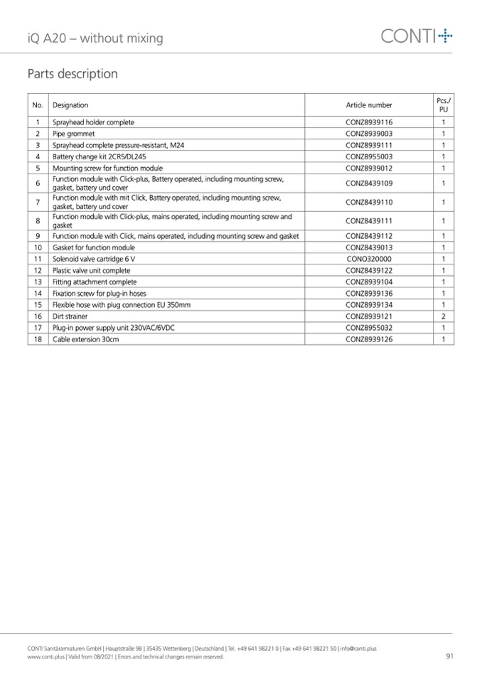 CONTI Sanitärarmaturen GmbH | Hauptstraße 98 | 35435 Wettenberg | Deutschland | Tel. +49 641 98221 0 | Fax +49 641 98221 50 | info@conti.plus