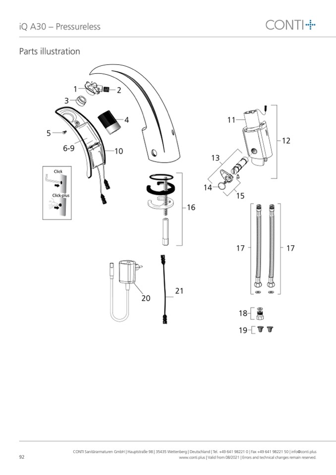 CONTI Sanitärarmaturen GmbH | Hauptstraße 98 | 35435 Wettenberg | Deutschland | Tel. +49 641 98221 0 | Fax +49 641 98221 50 | info@conti.plus