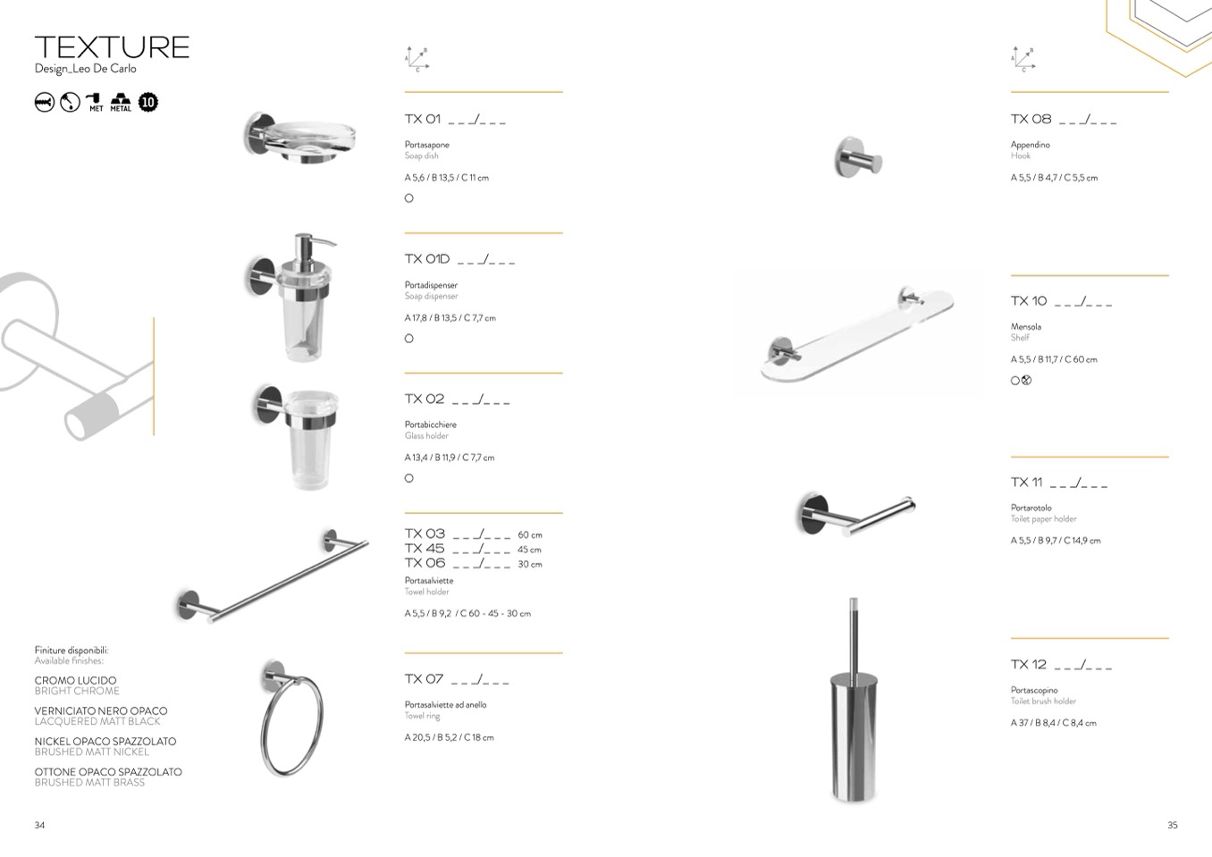 Available finishes:
