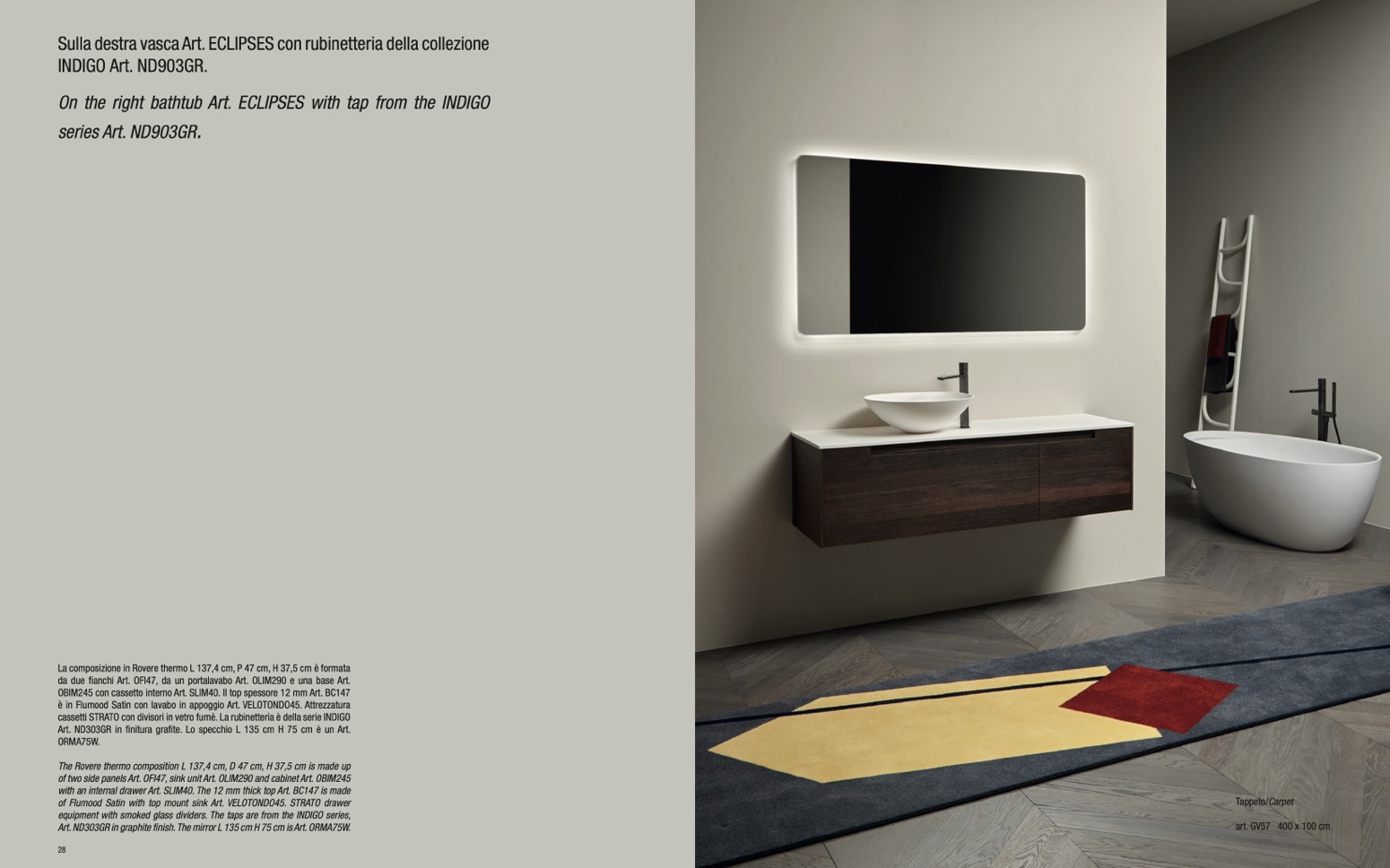 Sulla destra vasca Art. ECLIPSES con rubinetteria della collezione