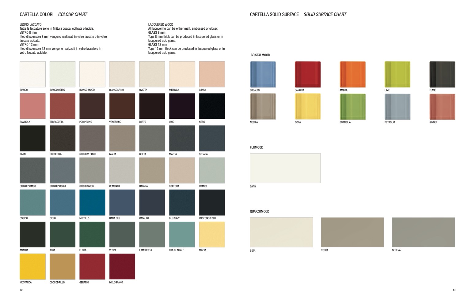 Tutte le laccature sono in finitura opaca, goffrata o lucida.