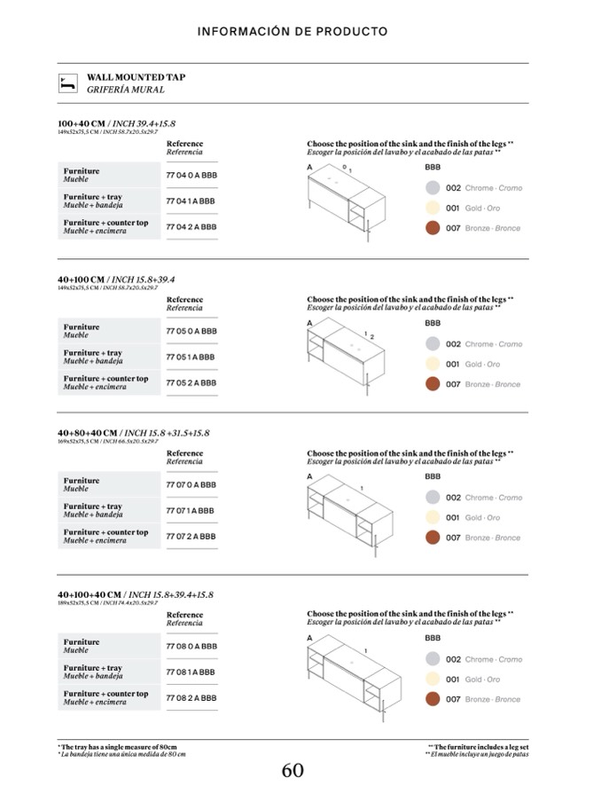 Escoger la posición del lavabo y el acabado de las patas **