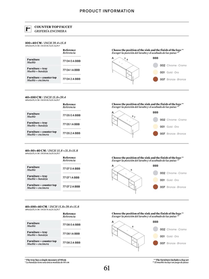 Escoger la posición del lavabo y el acabado de las patas **