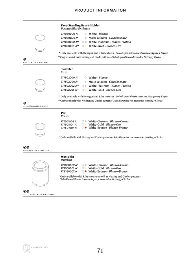 ** Only available with Netting and Circles patterns · Solo disponible con decorados Netting y Circles