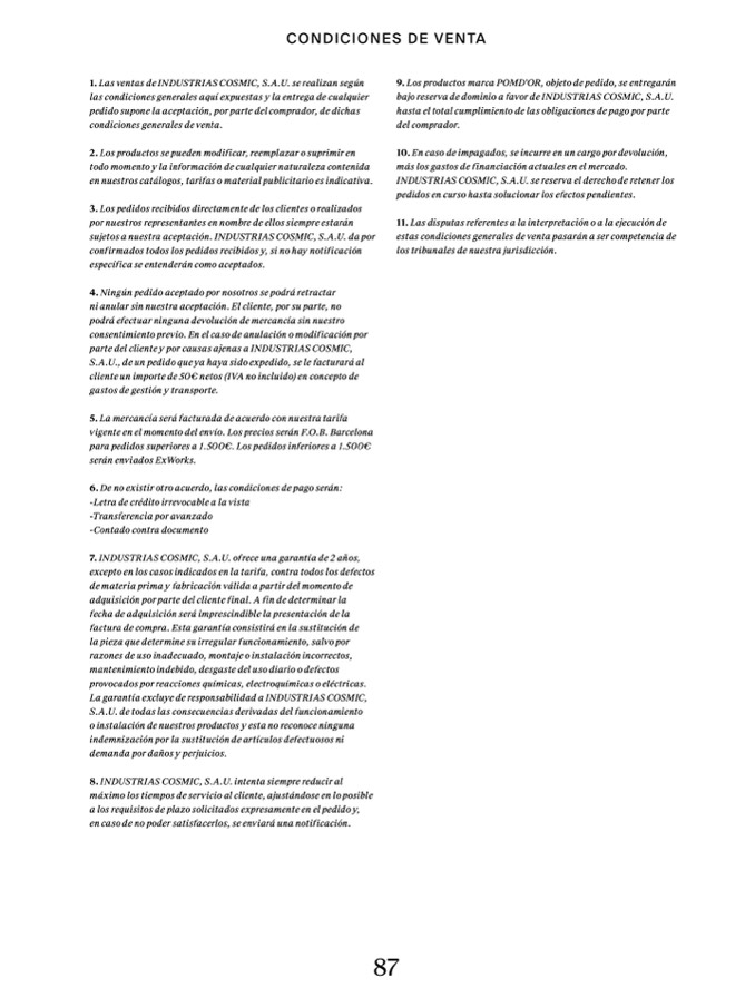 sujetos a nuestra aceptación. INDUSTRIAS COSMIC, S.A.U. da por