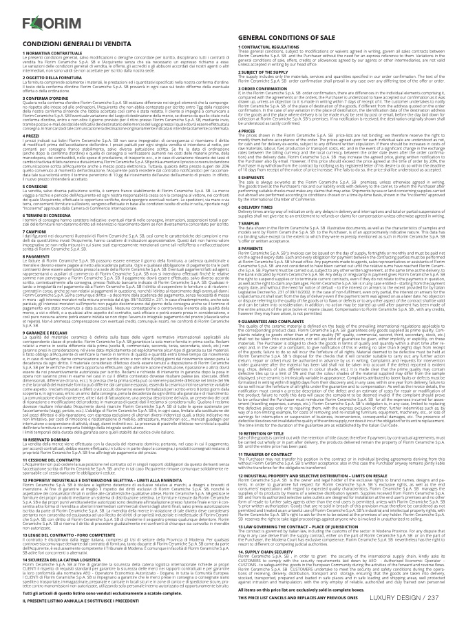 I prezzi indicati sui listini Florim Ceramiche S.p.A. SB non sono impegnativi: di conseguenza ci riserviamo il diritt