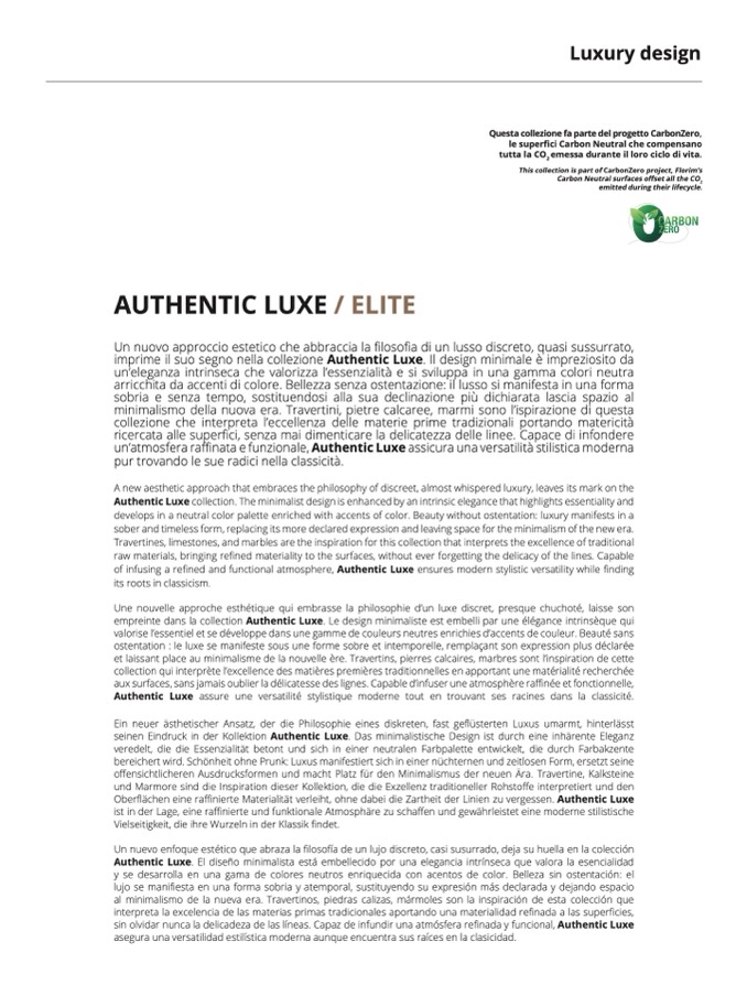 Authentic Luxe collection. The minimalist design is enhanced by an intrinsic elegance that highlights essentiality and