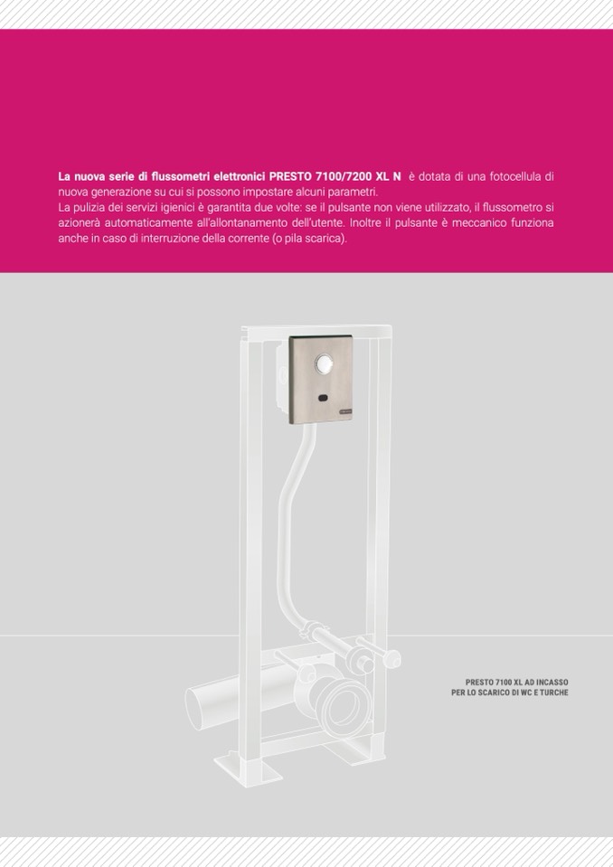 La nuova serie di flussometri elettronici PRESTO 7100/7200 XL N è dotata di una fotocellula di