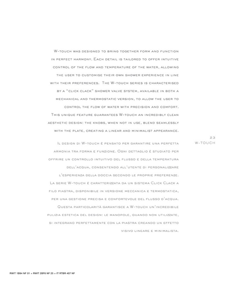with their preferences. The W-touch series is characterised