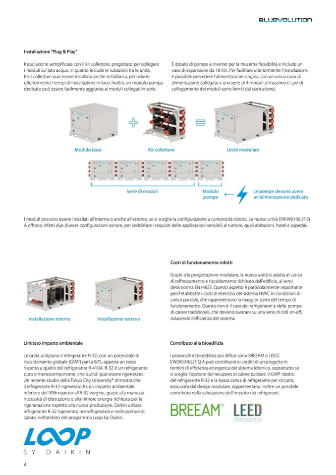 I moduli possono essere installati all'interno o anche all'esterno, se si sceglie la configurazione a rumorosità ridotta. Le nuove unità EW(W)(H)(L)T-Q