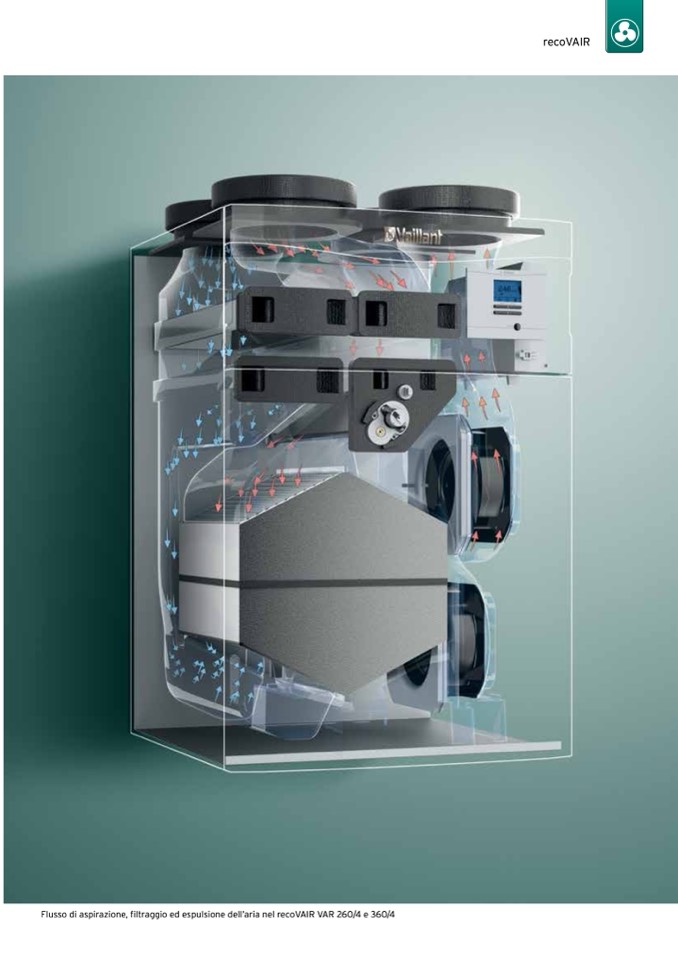 Flusso di aspirazione, filtraggio ed espulsione dell’aria nel recoVAIR VAR 260/4 e 360/4