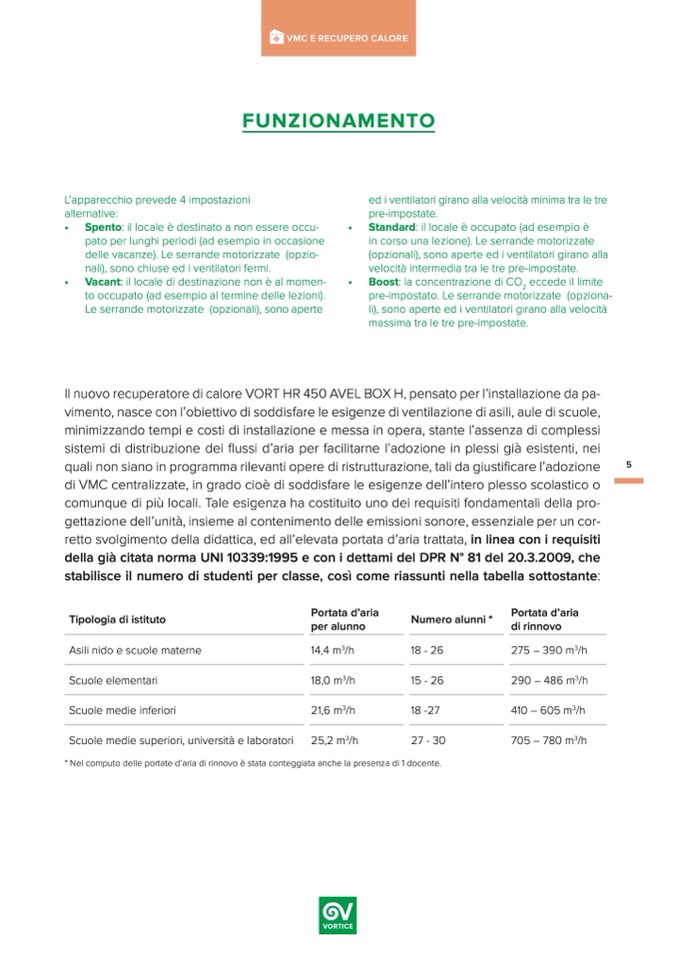 vimento, nasce con l’obiettivo di soddisfare le esigenze di ventilazione di asili, aule di scuole,