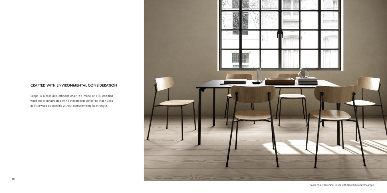 Scope is a resource-efficient chair. It’s made of FSC certified