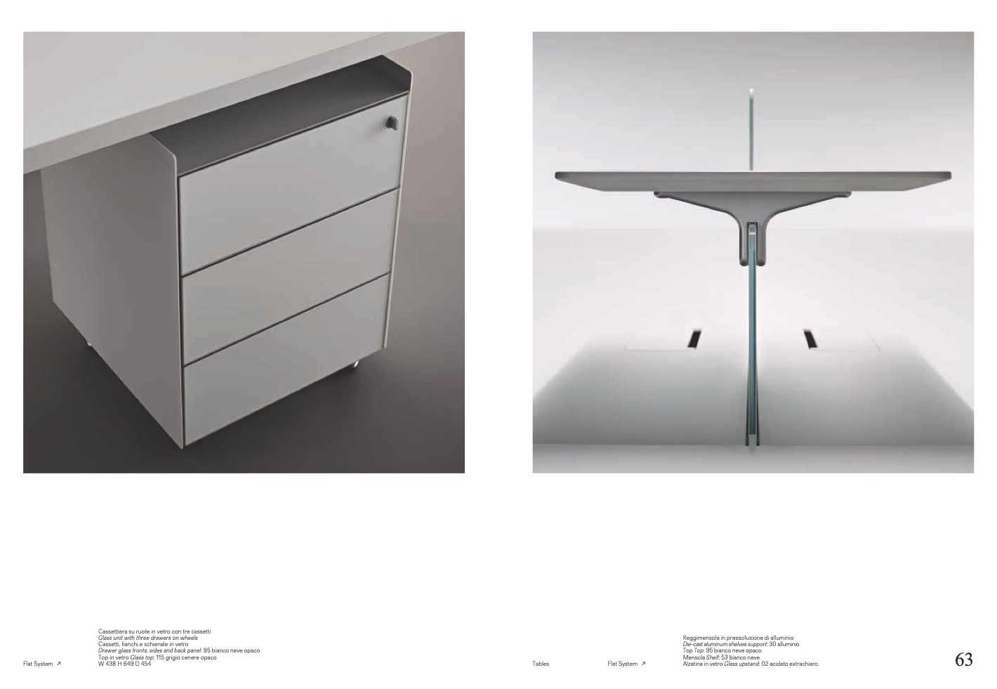 Drawer glass fronts, sides and back panel: 95 bianco neve opaco
