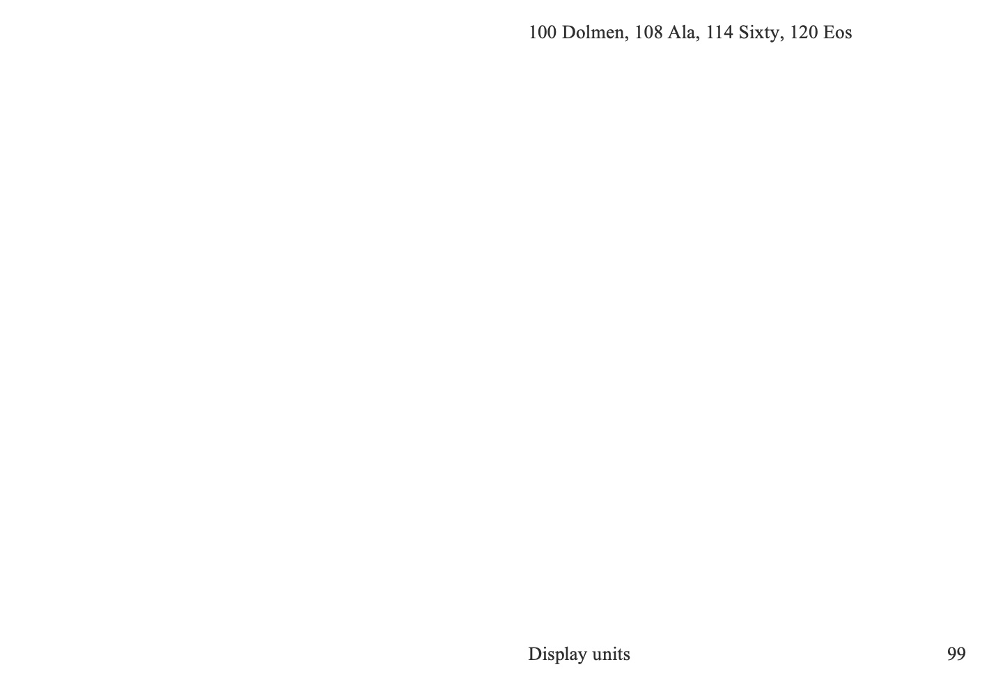 100 Dolmen, 108 Ala, 114 Sixty, 120 Eos