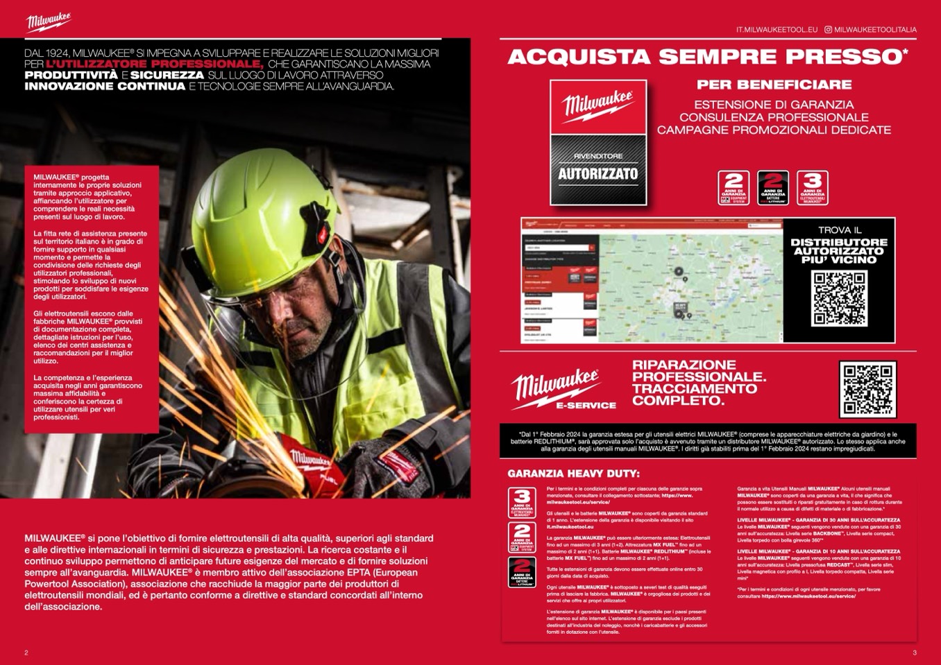 *Dal 1° Febbraio 2024 la garanzia estesa per gli utensili elettrici MILWAUKEE® (comprese le apparecchiature elettriche da giardino) e l