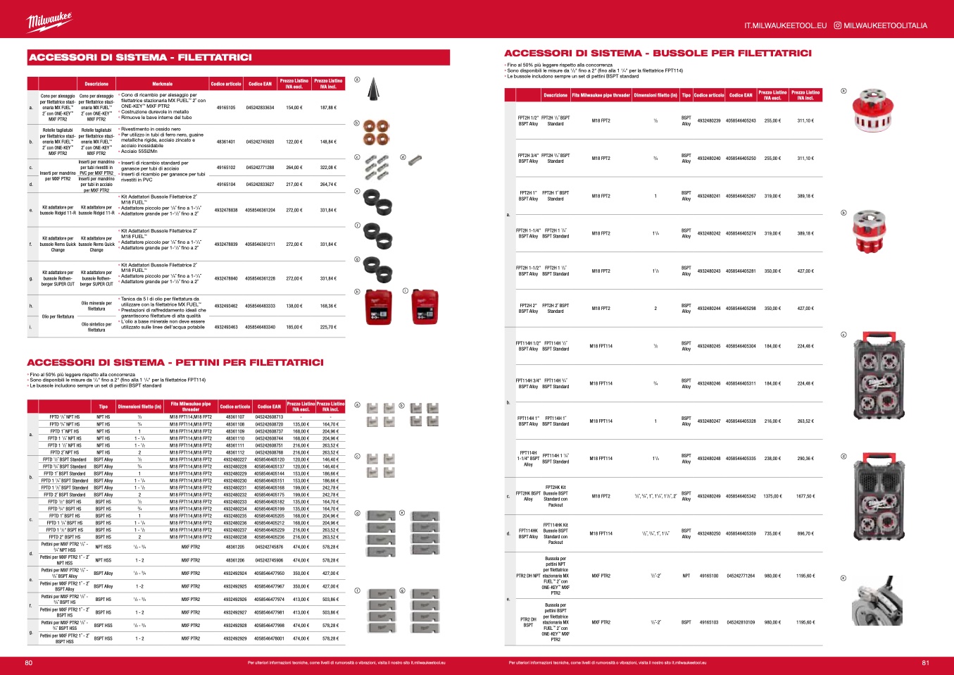 º Sono disponibili le misure da 1/2" fino a 2" (fino alla 1 1/4" per la filettatrice FPT114